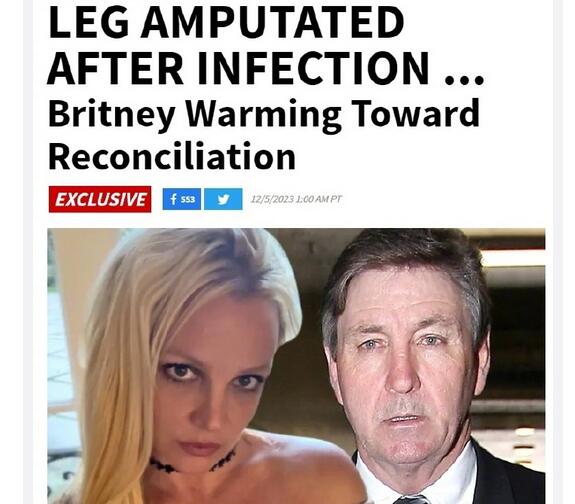 早前,布兰妮·的父亲Jamie Spears近期因为身体原因一个月前截肢,父女有望借此事和解。知情人士透露,杰米的一条腿严重感染,住院数周。为了控制感染,他做了5次手术,但都没有成功,医生决定唯一的方法就是截肢。