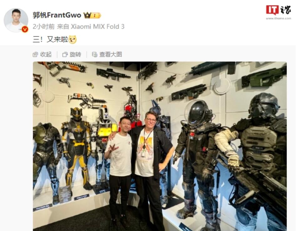 我们查询发现,与郭帆合影的是维塔工作室联合创始人兼 CEO 理查德・泰勒,两人此前已有过多次交流合作。