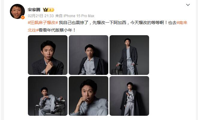 随后,演员宋家腾发文表示:“我自己也震惊了,先爆改一下阿加西,今天爆改的等等啊!”