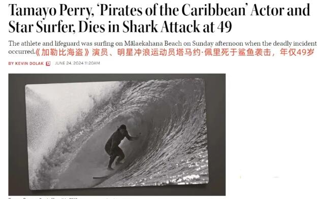 原标题:《加勒比海盗》男演员遭鲨鱼袭击,不幸身亡