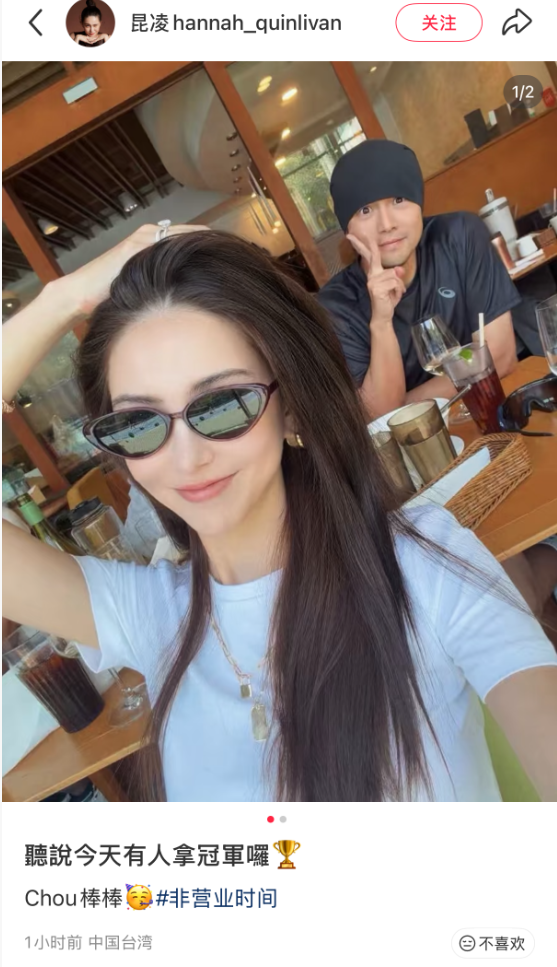昆凌晒与周杰伦甜蜜同框:听说今天有人拿冠军