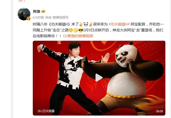 黄渤过了个年变身宝总 为《功夫熊猫4》“阿宝”配音